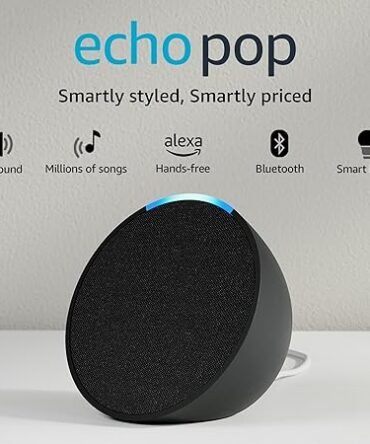 • Amazon Echo Pop| Smart speaker with Alexa and Bluetooth| Loud sound, balanced bass, crisp vocals|