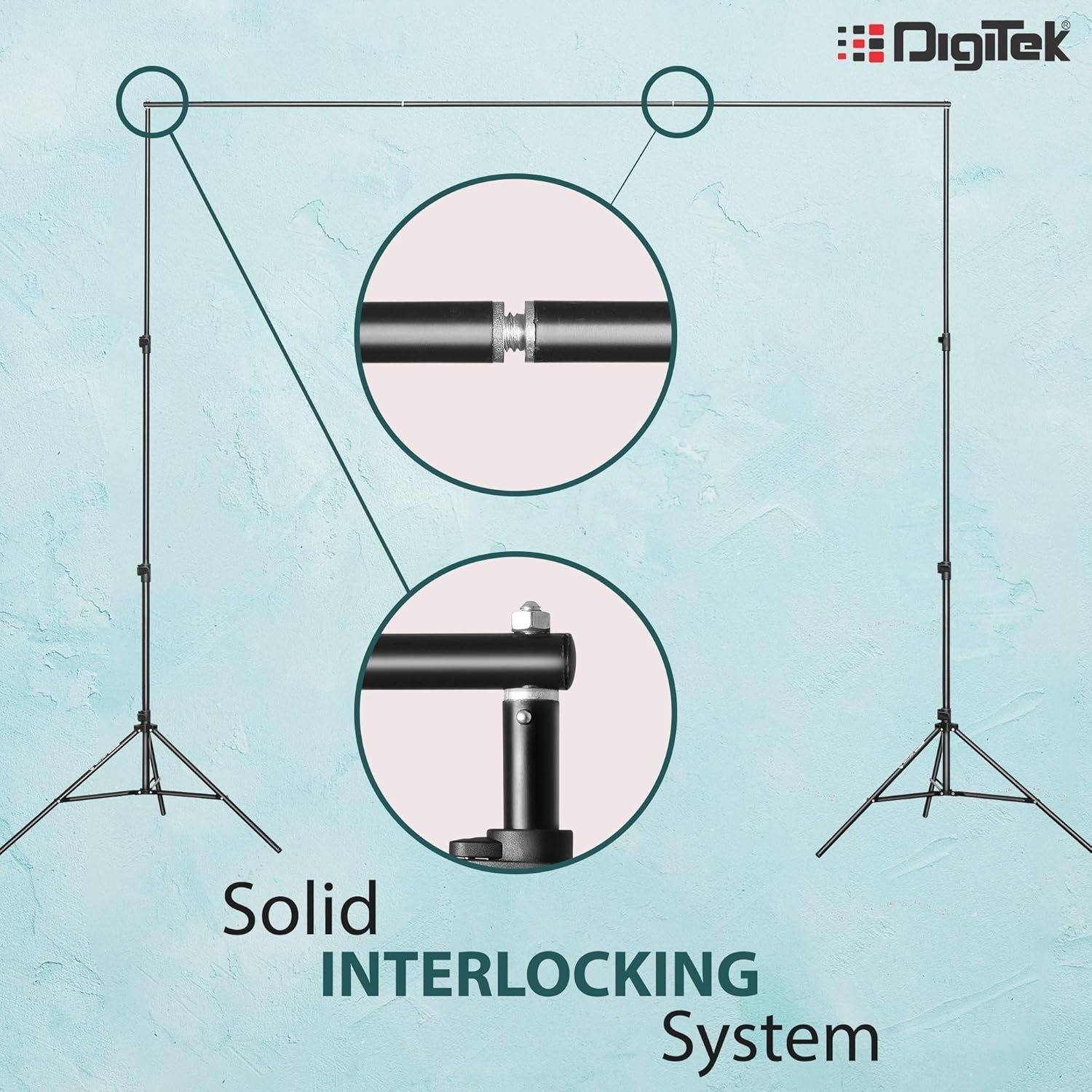 • Digitek Studio Backdrop Stand Kit Suitable for holding Photography & Videography Backdrops, Wedding Backdrop, Studio shoots, Selfie Booth Backdrop, Video Call Background, Projector Background, Online Video Shoots, and many more.