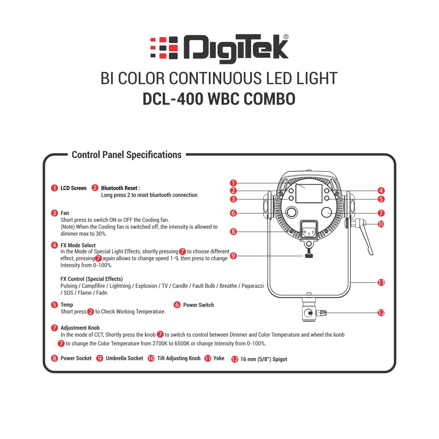 • 𝗣𝗼𝘄𝗲𝗿𝗳𝘂𝗹 𝟯𝟱𝟬𝗪 𝗟𝗘𝗗 Video 𝗟𝗶𝗴𝗵𝘁: Illuminate your space with the Digitek DCL-400 WBC Combo, providing powerful and consistent lighting for professional photography or videography needs.