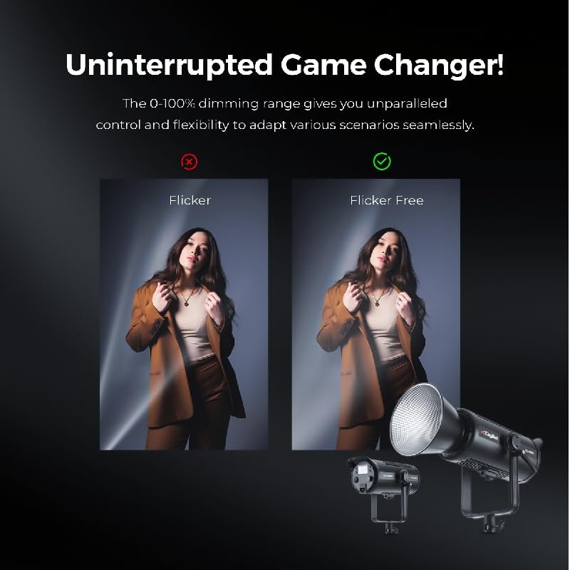 • 𝗩𝗲𝗿𝘀𝗮𝘁𝗶𝗹𝗲 𝗕𝗶-𝗖𝗼𝗹𝗼𝗿 𝗟𝗶𝗴𝗵𝘁𝗶𝗻𝗴: Switch between warm and cool light with ease, catering to various shooting environments and creative requirements.