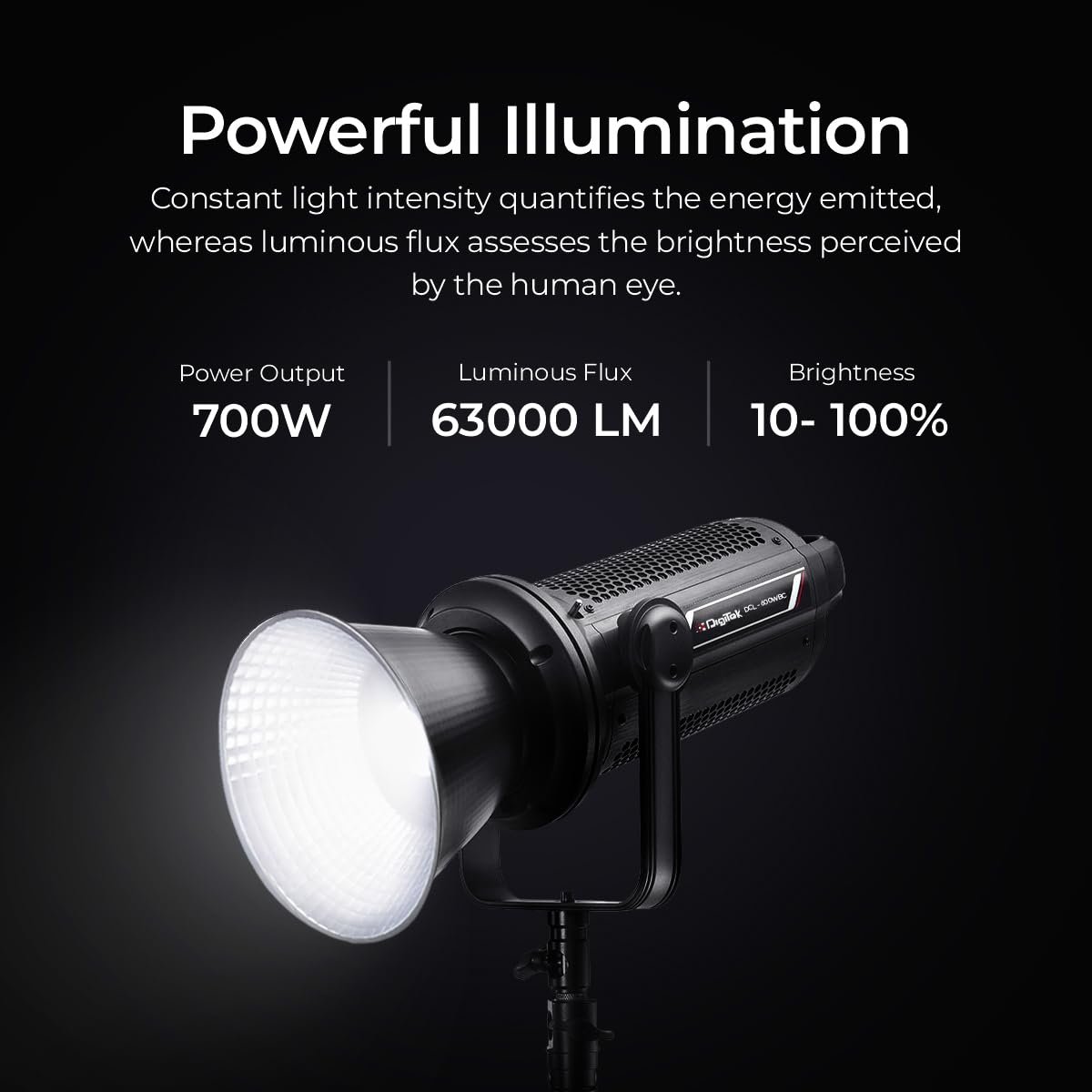 DIGITEK® (DCL-600WBC) 700W Bi Color Continuous LED Video Light with 18CM Reflector & Portable Power Box, AC Power, 2700K-6500K Color Temp Control, 96+ CRI, 63000 Lumen, Ideal for Shooting