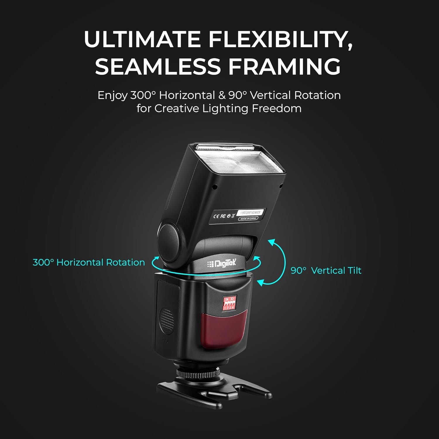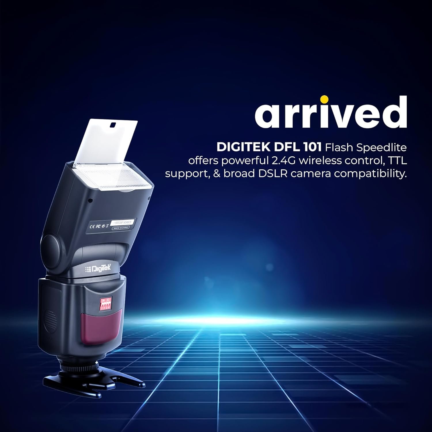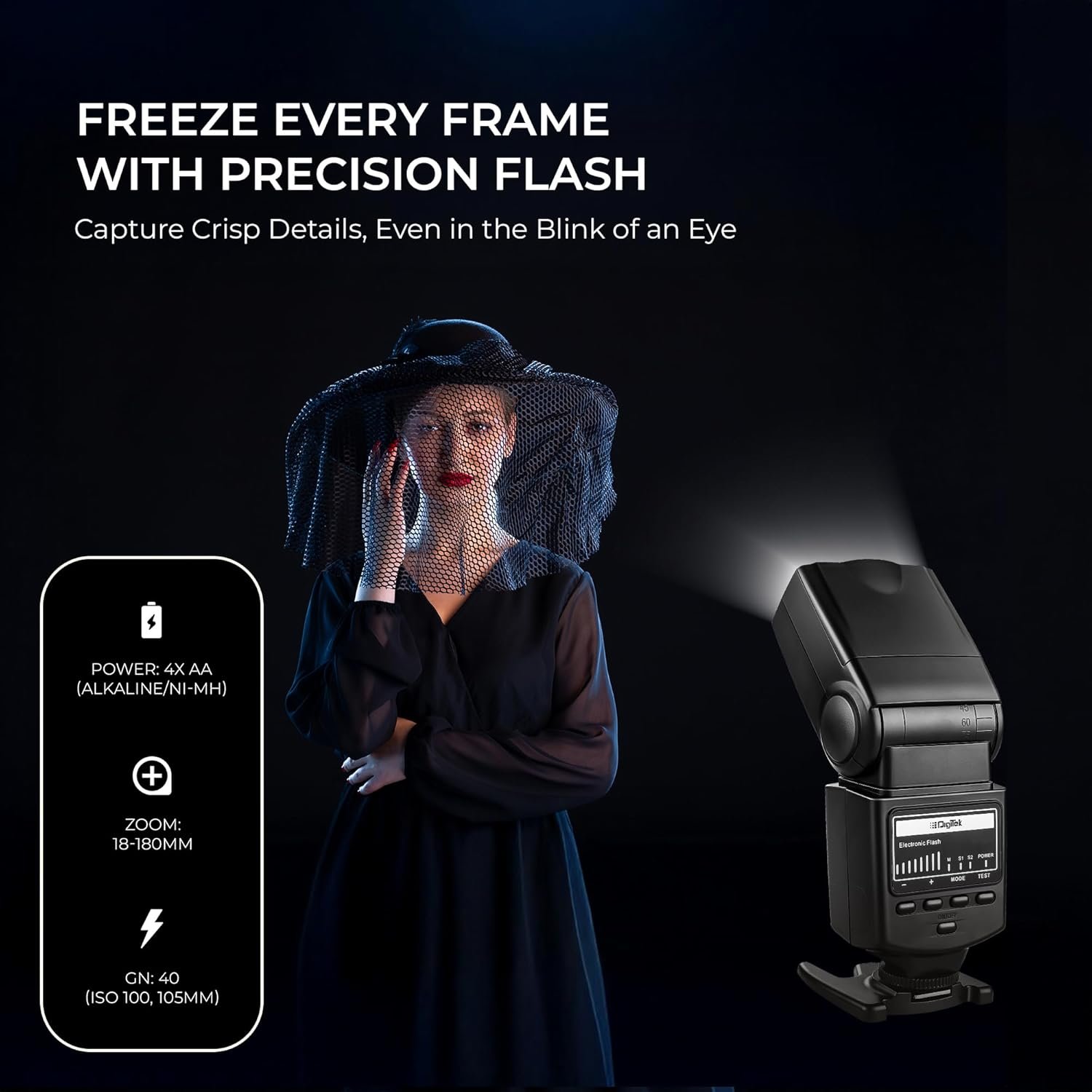 Digitek (DFL 101) Electronic Flash Speedlite with Wireless Triggering, GN40, 0.1-5s Recycle Time, 0-270° Vertical Rotation, 5600K Color Temp, for Canon, Nikon, Sony, Fujifilm, Olympus DSLR Cameras