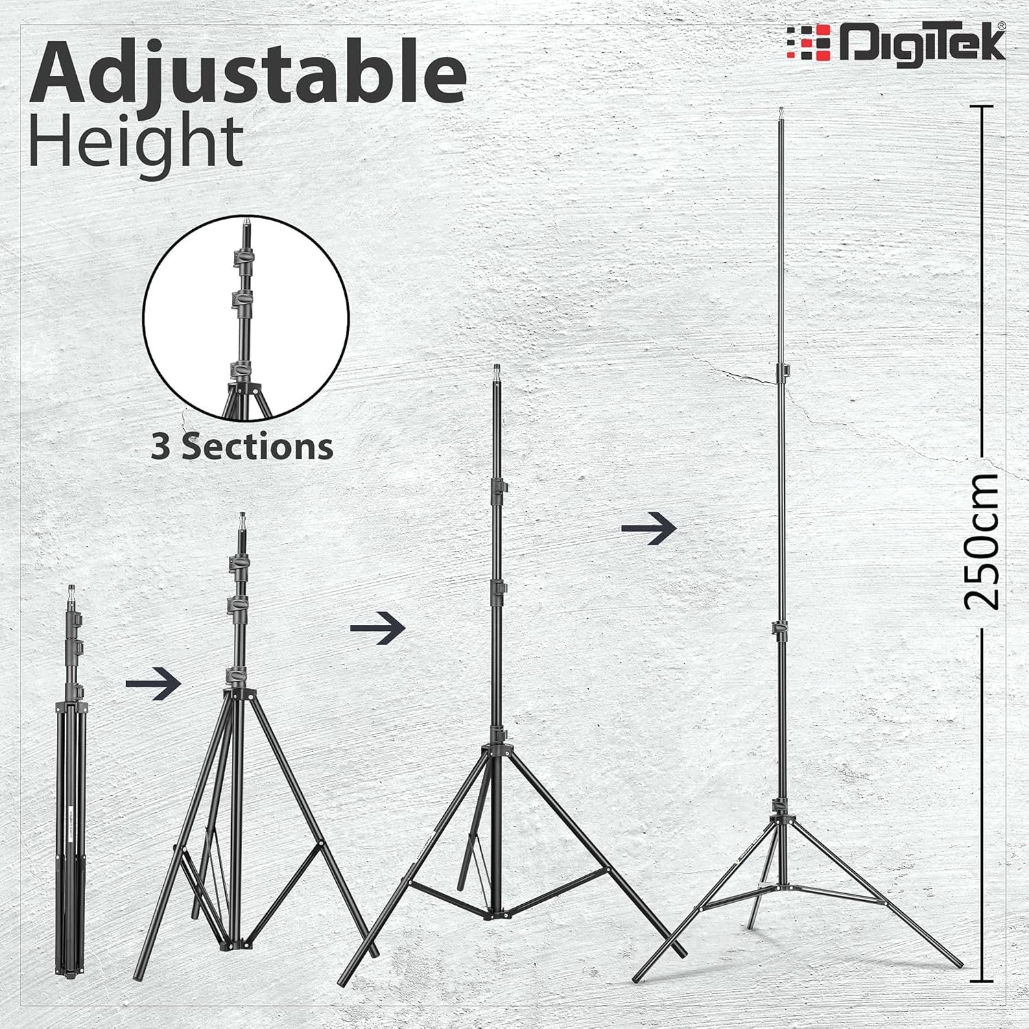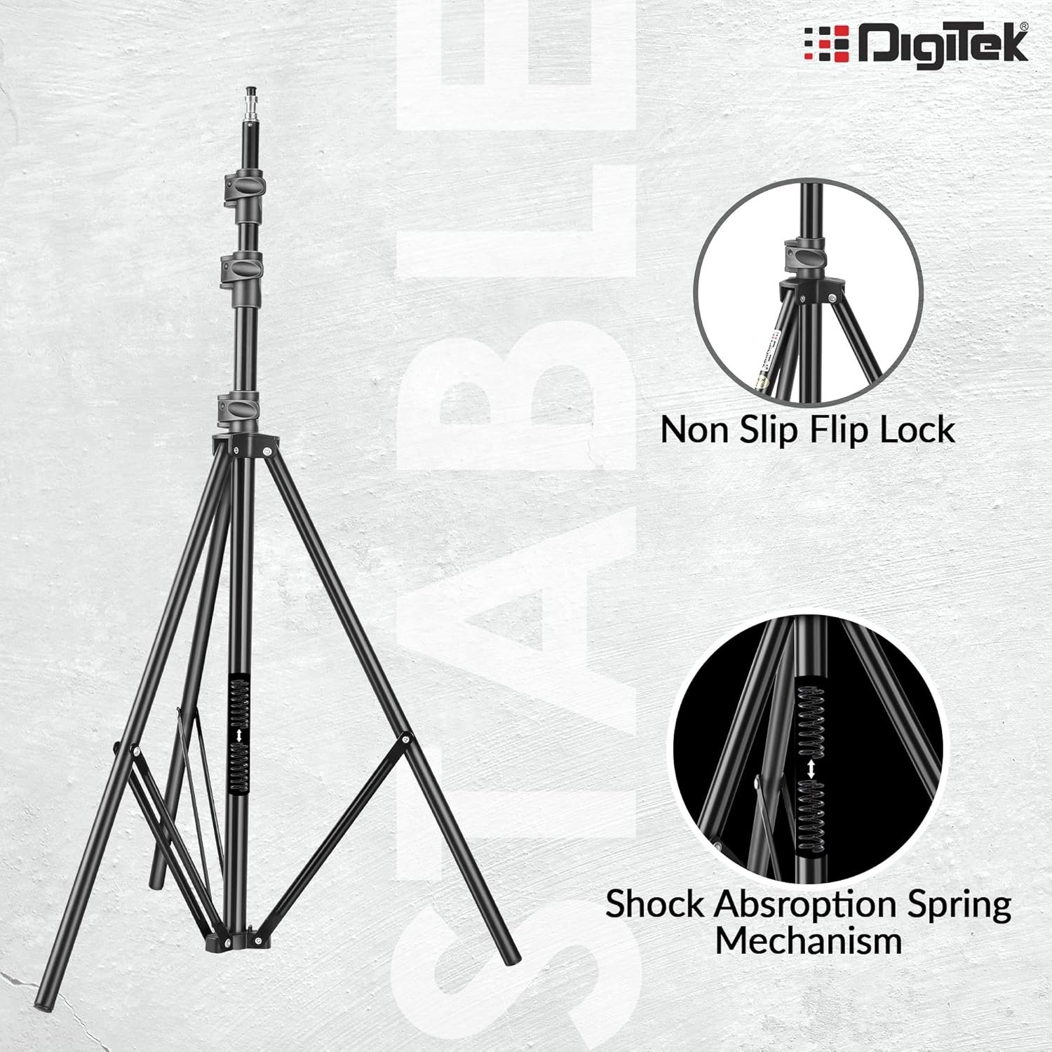 - CRAFTED FOR BEGINNERS TO PROFESSIONALS: Capture vivid, professional-style photographs under perfect light with help of Digitek Light stand DLS009 FT. From a novice to a professional anyone can use this equipment. Compatible with most ring lights, light lamps, reflectors, umbrellas, Flash units, etc.