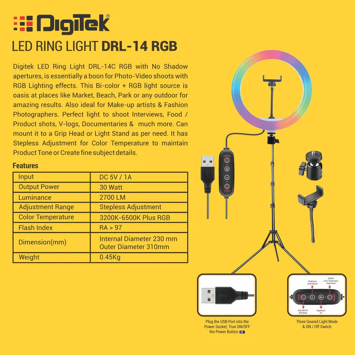 Digitek (DRL-14 RGB) 31cm LED Ring Light for Photo & Video Shoot Live Stream & More