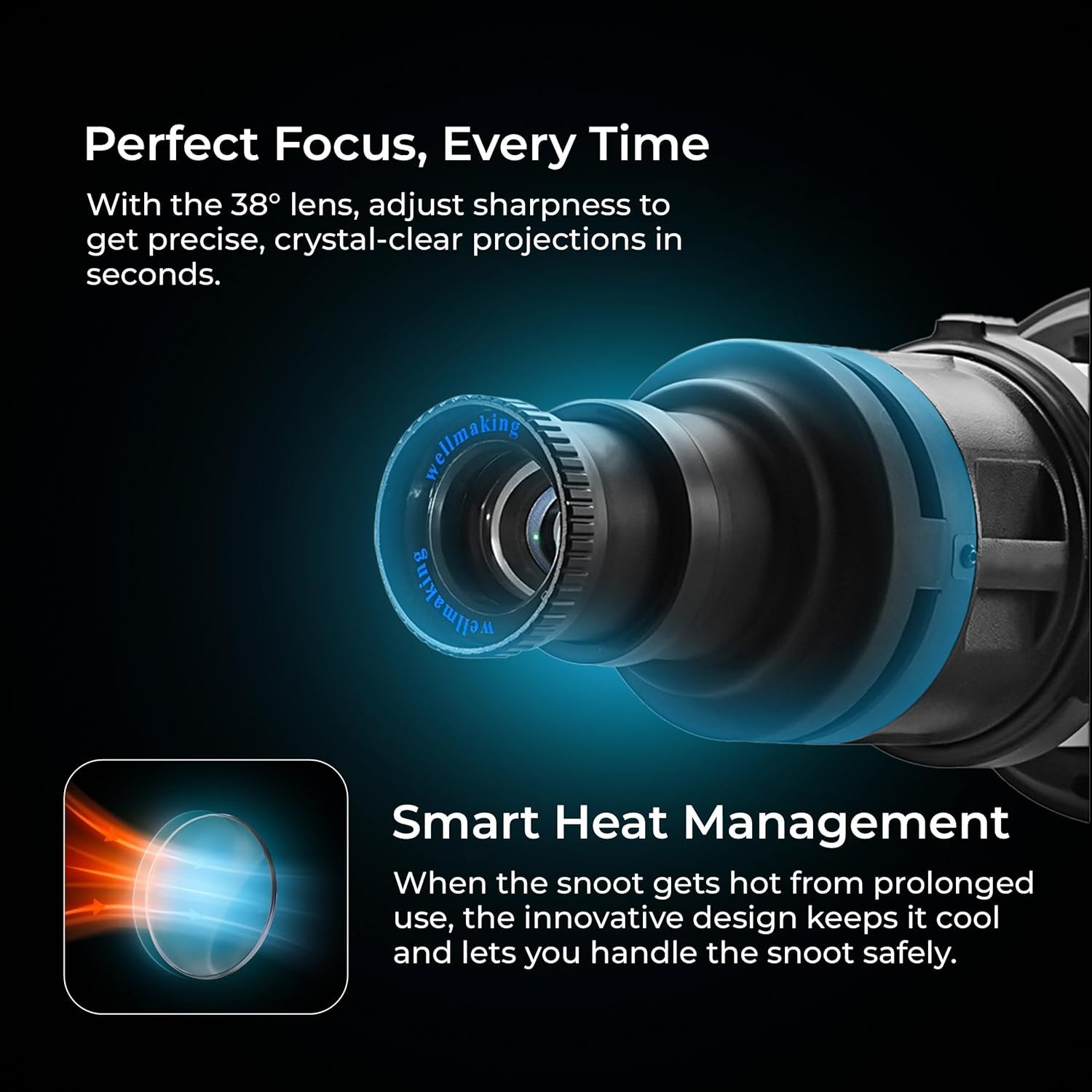 - Integrated design with the lens in 38°, you can Sharpen or Soften the Edge of the Image by Adjusting the Projection image from Vague to more Sharp.