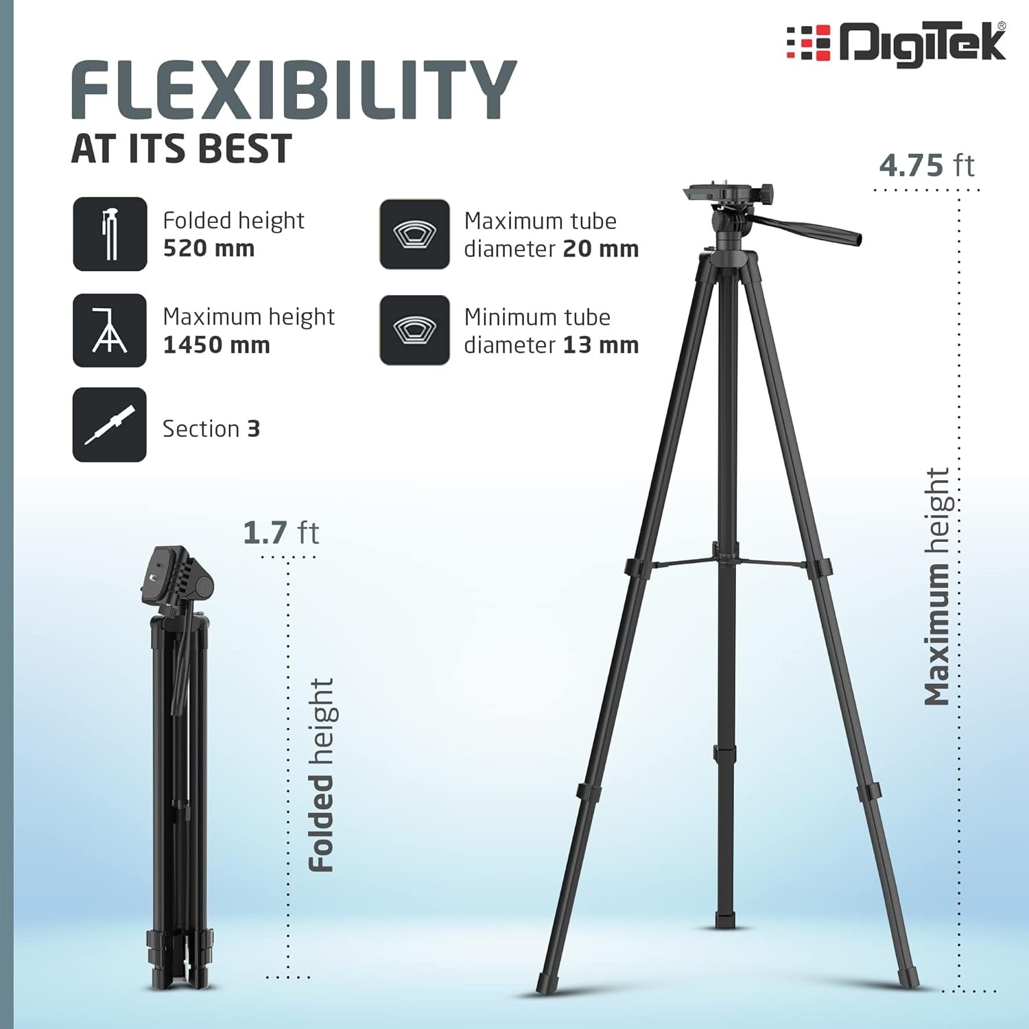 Be the first to review “DIGITEK (DTR 480LW) 57 Inch Portable Aluminium Alloy Tripod with Smartphone Holder & 360° Ball Head, 3 Section Adjustment, 2kg Load Capacity, Carry Bag, Compatible with Smartphone, Video Camera, DSLR.”