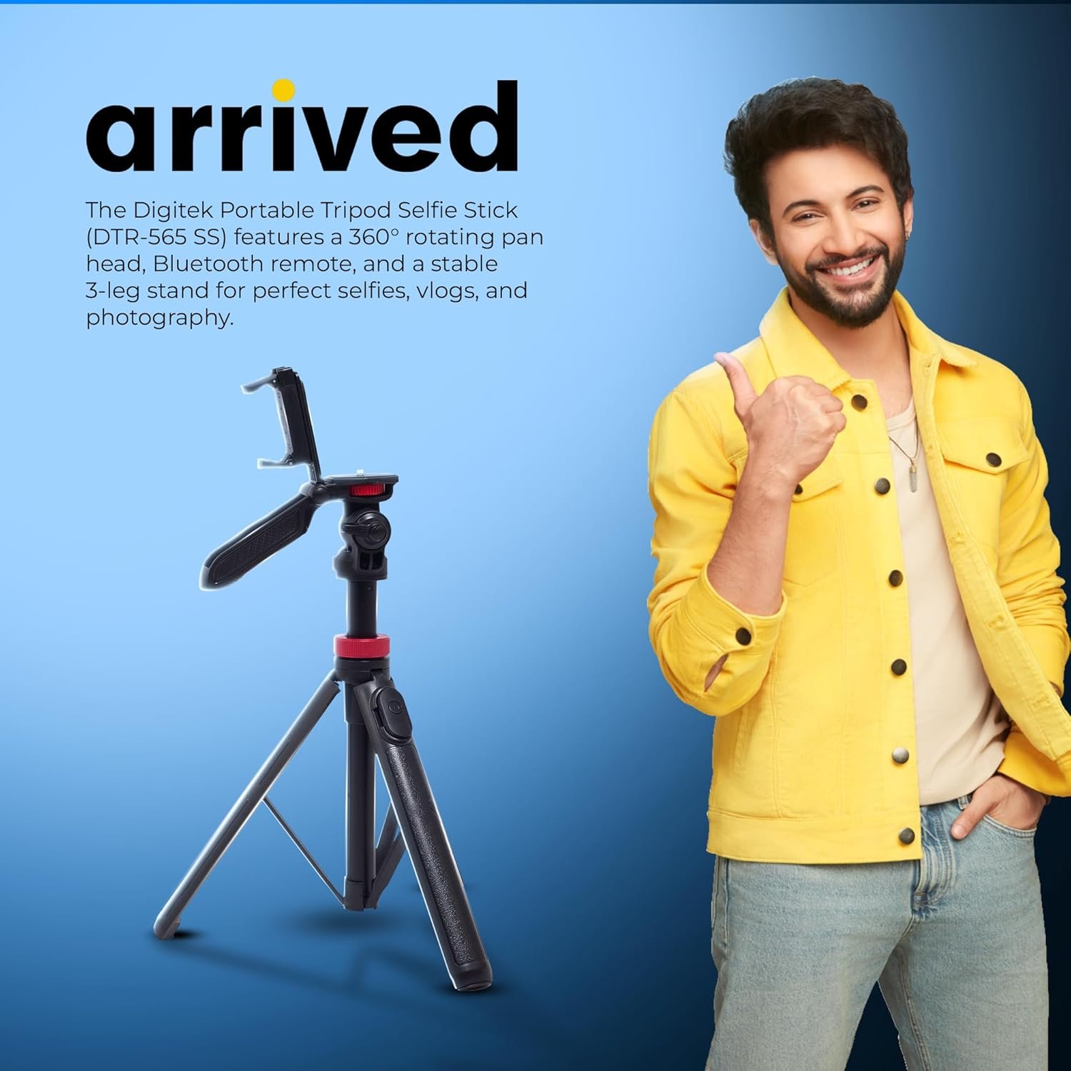 Digitek (DTR 565 SS) Tripod Selfie Stick with Wireless Remote, 360° Rotation, 7-Section Aluminum Rod, 1450mm Max Height, 3kg Load, GoPro Adapter – Compatible with Phone & Action Cameras