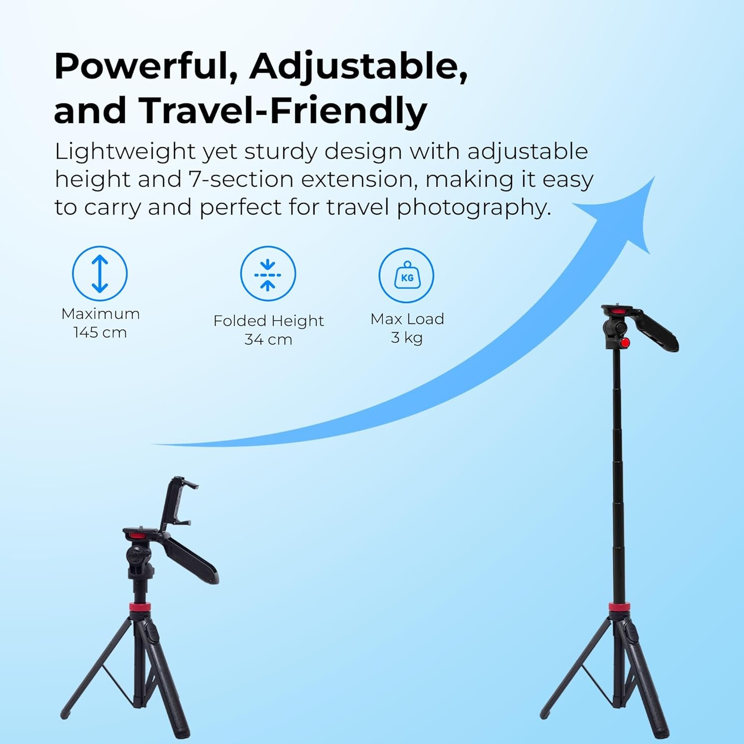 - COMPACT & FOLDABLE: Collapses to just 330mm, making it lightweight and travel-friendly for outdoor shooting or on-the-go content creation.